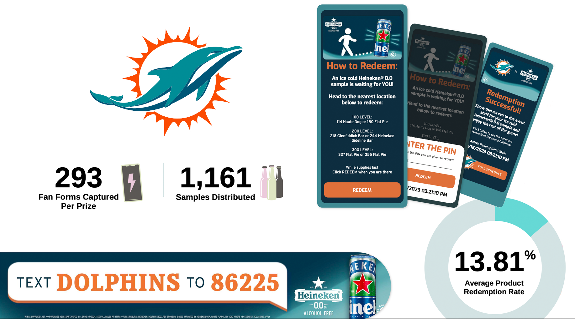 Heinekin and the Miami Dolphins drove home their Brew of the 4th Quarter messaging with a Fanup campaign that delivered