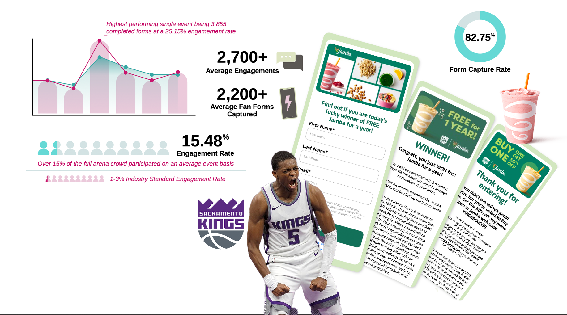The Sacramento Kings partnered with 6 different sponsors to create a fan-favorite slot in the game-by-game run of show. Fans were on the edge of their seats in anticipation as they awaited the nightly announcement of the fan reward up for grabs. Free Jamba for a whole year!!!